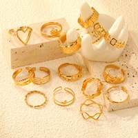 18K金メッキステンレス鋼中空ミニマリストリング流行の防水ジュエリーチャンキーオープニングリング女性用