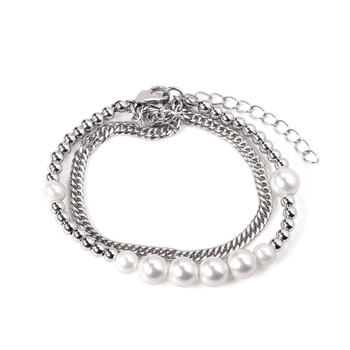 Trang Sức Mạ Vàng Ngọc Trai Tự Nhiên Thép Không Gỉ Chuỗi Đôi Liên Kết Vòng Tay Cho Phụ Nữ